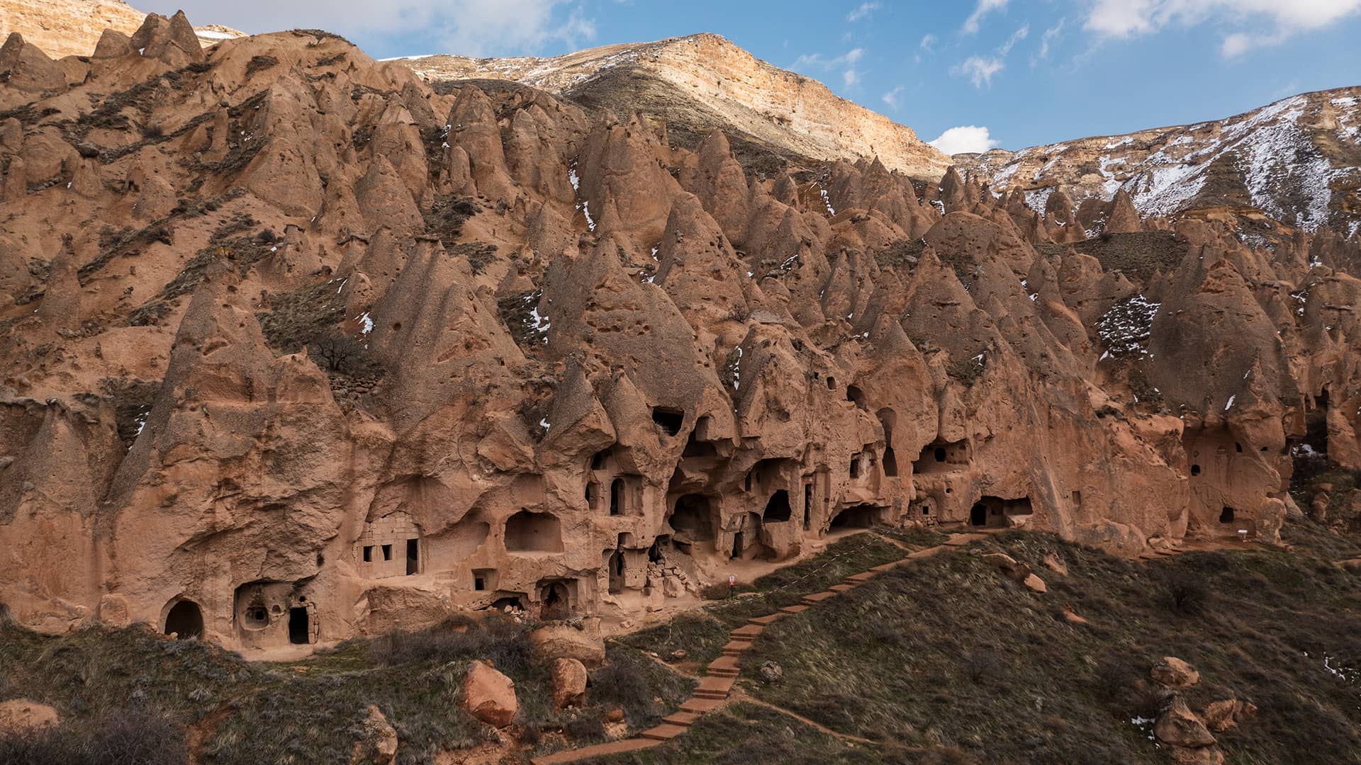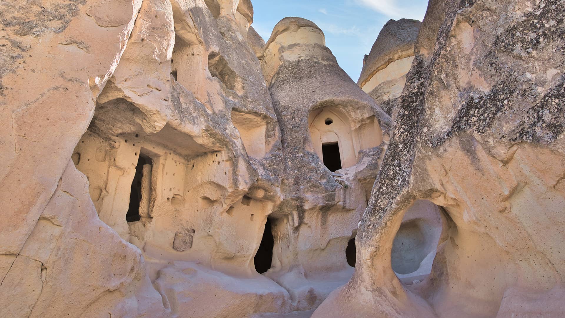 Consisting of three valleys, Zelve, which was a residential area, has the most intensity in terms of fairy chimneys. The important churches in the valley are Balıklı and Üzümlü, all hauntingly captivating, illustrating the ancient monastic life.