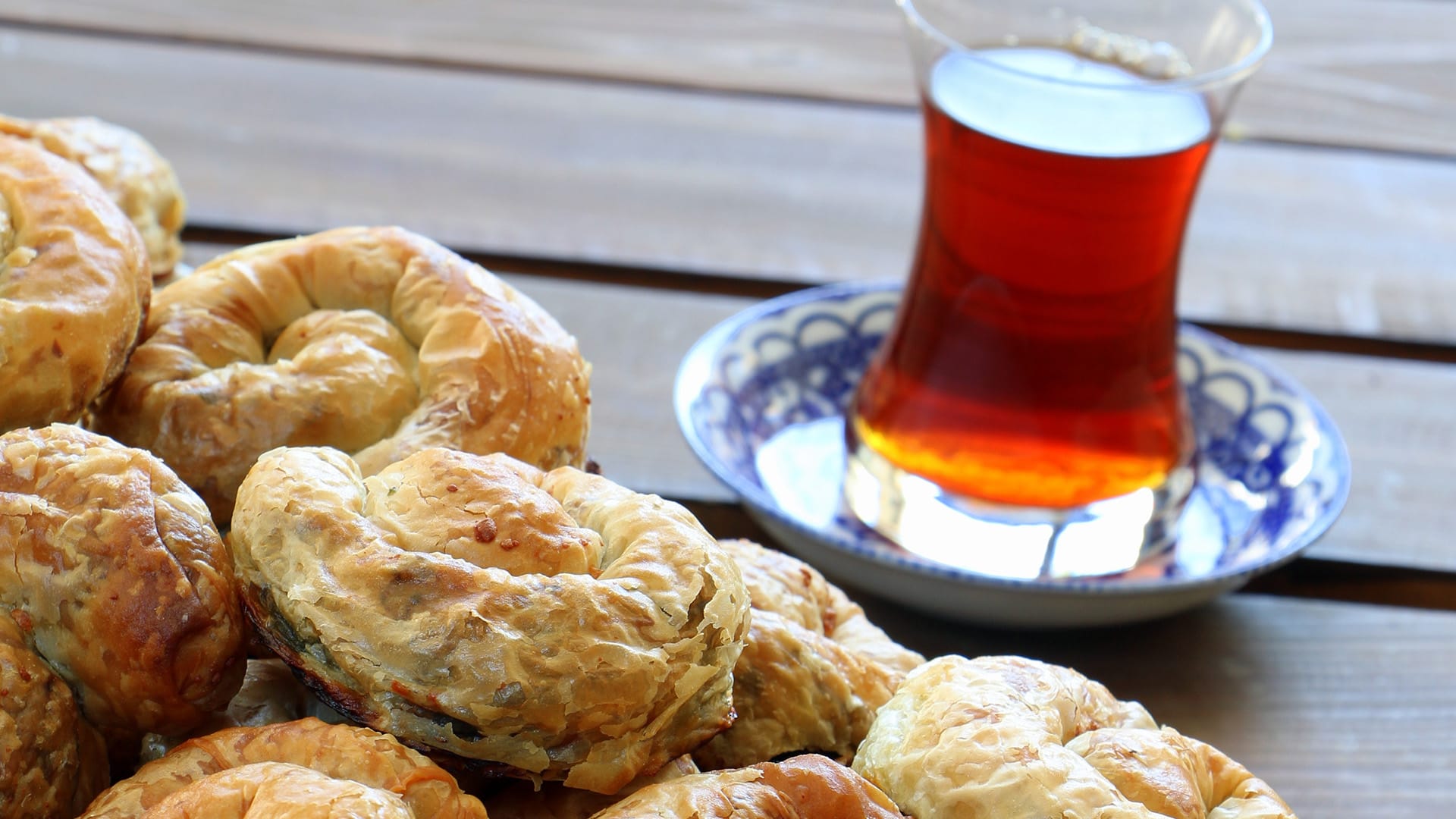 Boyoz is a Turkish pastry that was brought over to the country by Sephardic Jewish immigrants from Spain in the late 15th century. A traditional taste, boyoz is made of flour, sunflower oil and tahini. It is a simple, small, rounded pastry. Additional fillings like meat, cheese or spinach are also used. An essential part of breakfast, it is generally eaten beside a hard-boiled egg, sprinkled with salt and black pepper and a glass of strong Turkish tea. “Gevrek”, the twice-baked simit - round-shaped bread dipped in molasses and topped with sesame seeds-, is another local flavour in İzmir.