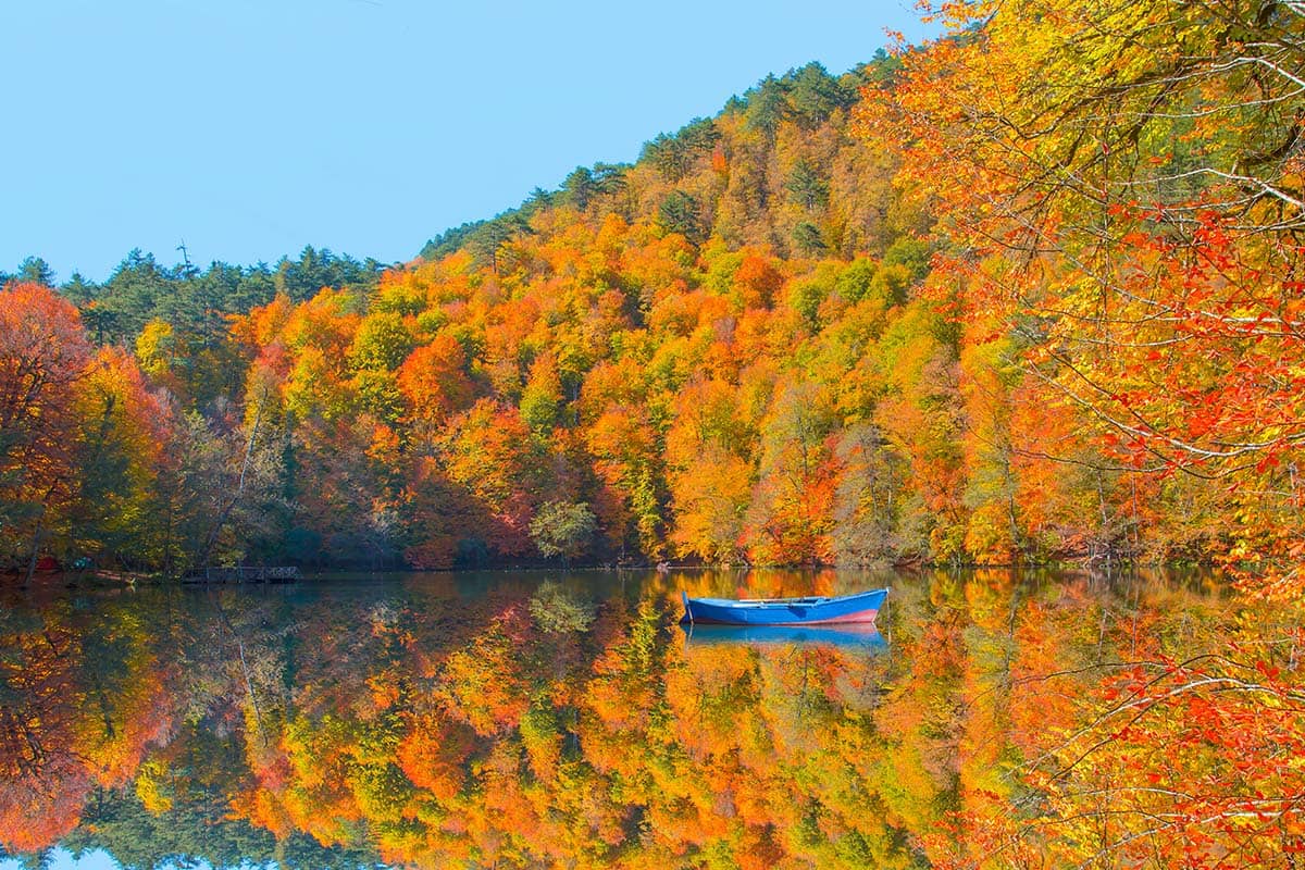 Türkiye’s Seven Lakes region known as Yedigöller, is located across the northern part of Bolu province. The region is under a four hour car ride from Istanbul and there are many bus services running routes between Istanbul and Bolu each day. From the Bolu’s center, affordable ground transportation shuttles visitors to the Seven Lakes region in about an hour. The region is popular to tourists year round, however, its many forests make the area particularly charming in autumn. As it is a seasonal climate, visitors should be sure to pack smartly as the colder months can be quite chilly. During the winter months, there is a possibility that the access roads to the National Park are closed due to snowfall and icy conditions.