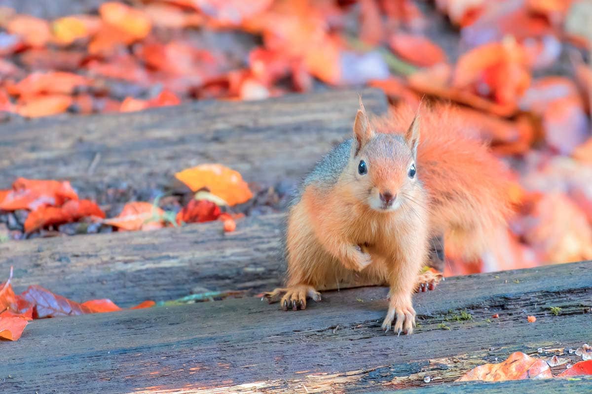 Red squirrel amid the Autumn leaves