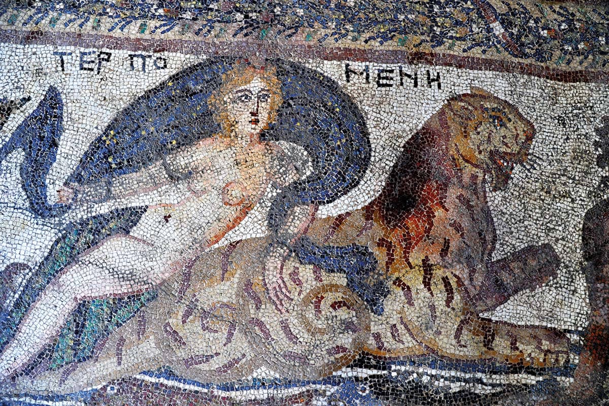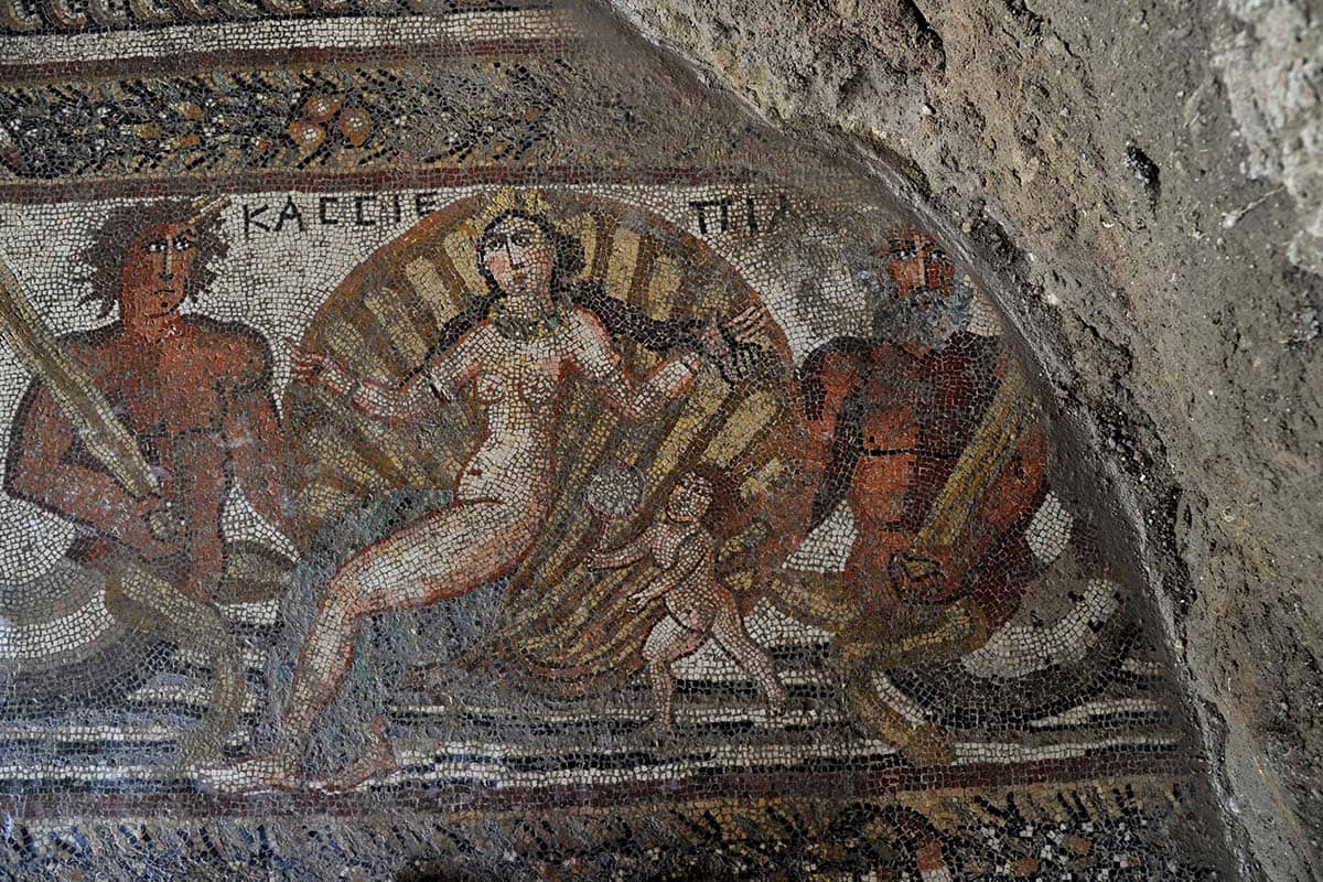 Archaelogical excavations on site revealed some of the most remarkable findings. Foremost among these are the three large mosaics of mythological stories and scenes from the wild life and nature: Passage of Nereids and Cassiopeia and Tritons, Seasons and Animals, and the Lion Hunt of Aeneas and Dido.