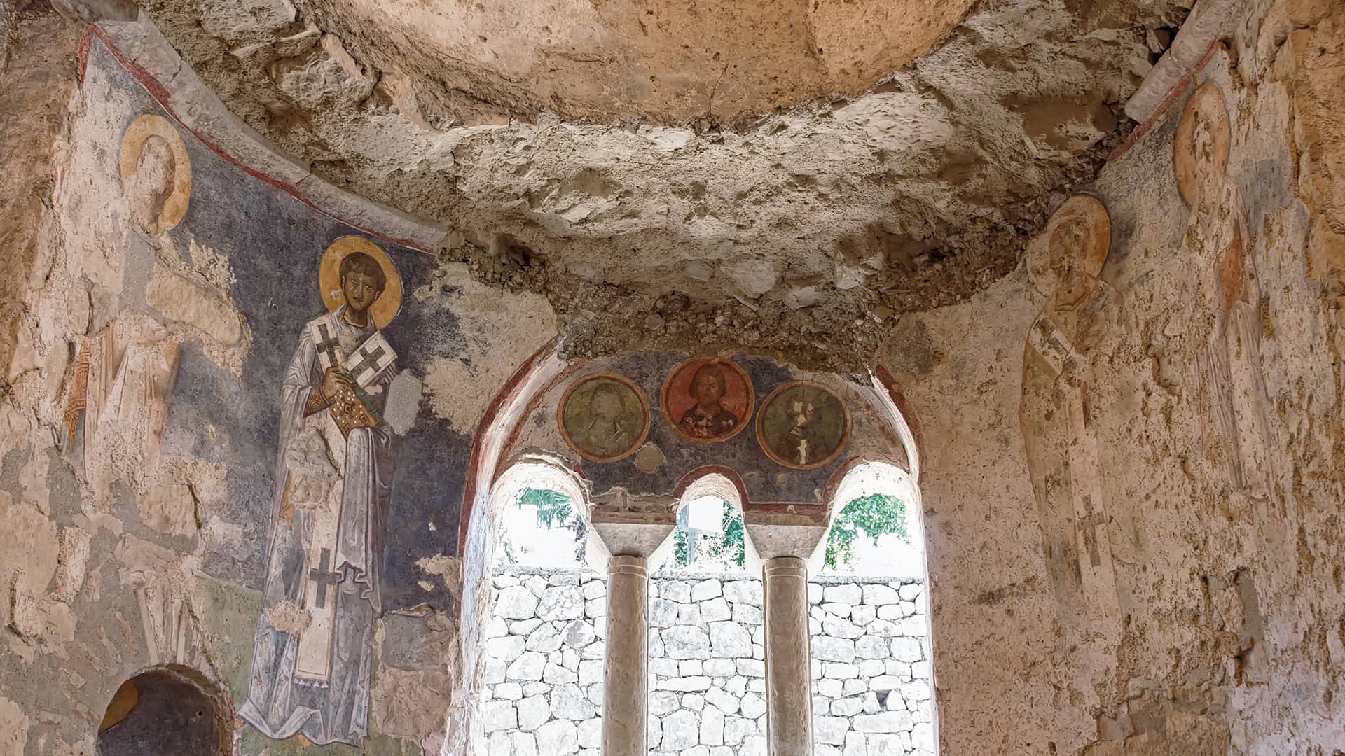On a fresco located in the apse of the church no. 2 on the island, "Hossios Nikolaos" is written. Based on this, the church was named the Church of St. Nicholas since it is thought that the church was dedicated to St. Nicholas.